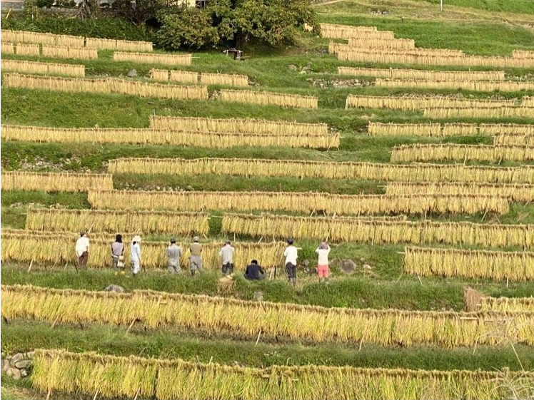 現在、上山の千枚田は4分の1ほどまで再生され、米作りが行われるようになりました。それでも草刈りや水路の保全などなど、田んぼを守るための営みは、毎年繰り返し行われています。
