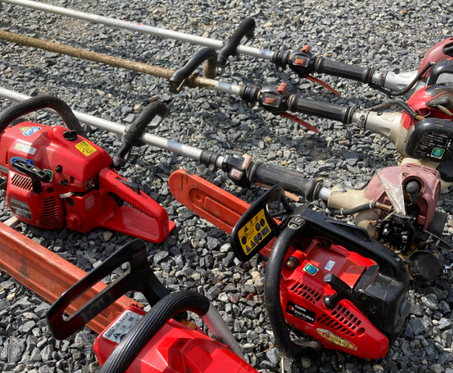 (草刈り機、チェーンソーの写真を入れ、以下のようなキャプションを入れるとか。