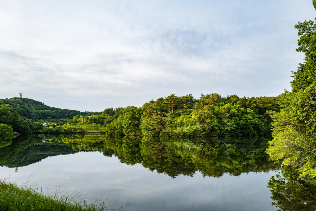 大芦は上山地区で最も標高の高い場所に位置し、広大な上山の千枚田を潤す溜め池、大芦池があります。